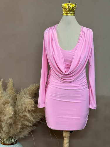 ناموجودپیراهن رومی آستیندار قد میدی رنگ صورتی(code:2005)