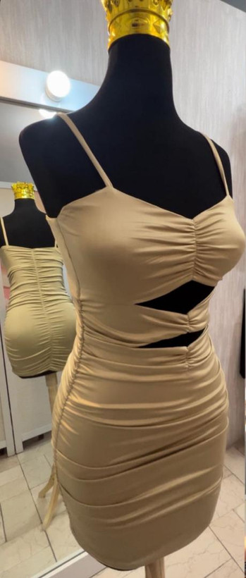 دوطرف پیراهن و همپنین روی باسن چین کار شده که قد پیراهن قابل تنظیمه