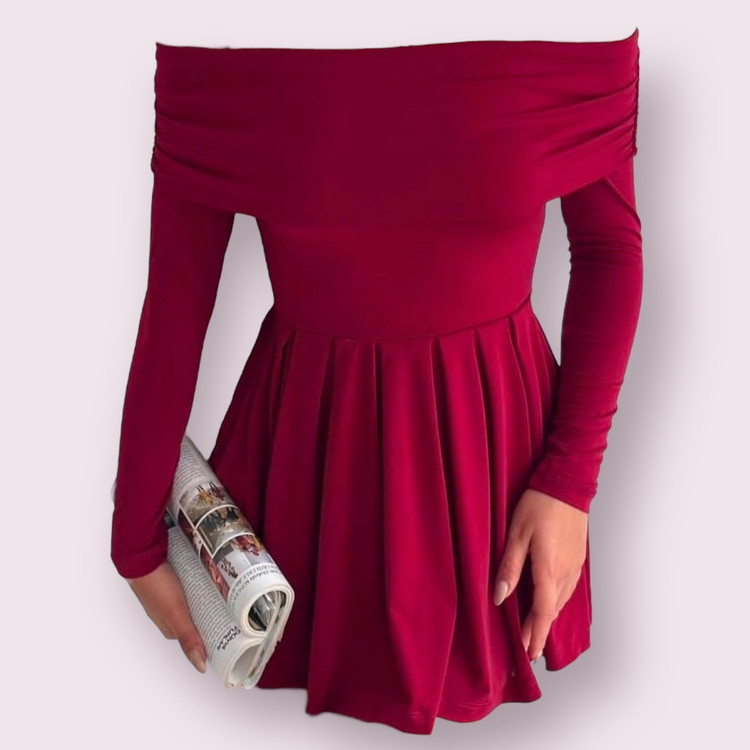 پیراهن زنانه آف شولدر(یقه مدونا) چین دار کوتاه(code:311)