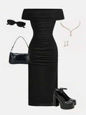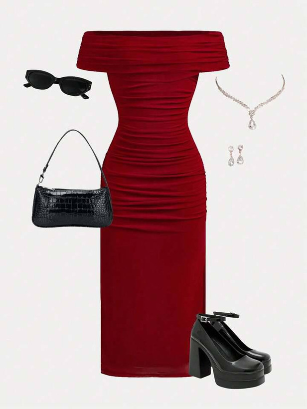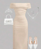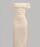پیراهن زنانه دکلته آستین سرخود قد میدی(code:317)