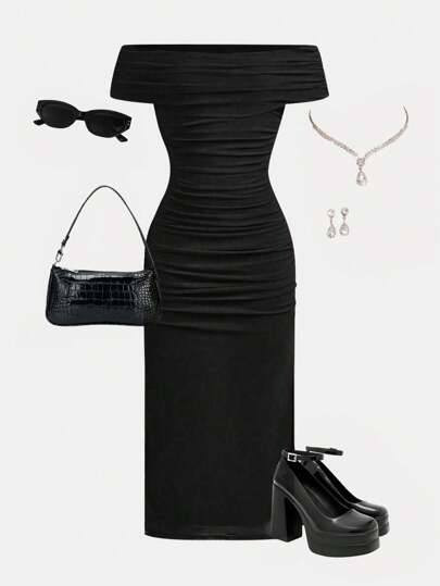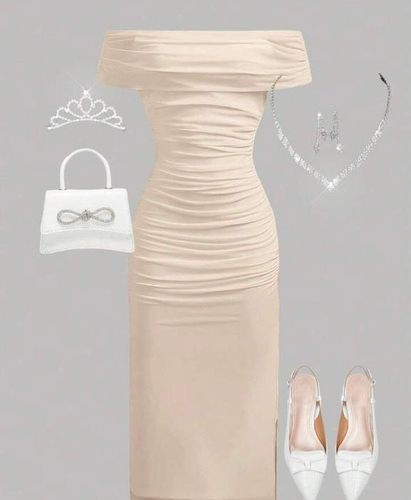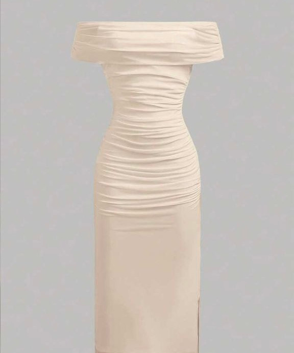 پیراهن دکلته آستین دار کوتاه سرخود چین دار