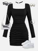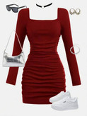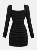 یک لباس فوقالعاده شیک با طراحی جذب و برشهای اندامی که به زیبایی فرم بدن را نشان میدهد. یقهی مربعی با آستینهای بلند، استایل را شیکتر و مدرنتر کرده است. جنس پارچه کشی با بافت ریز، فرمدهنده و راحت است