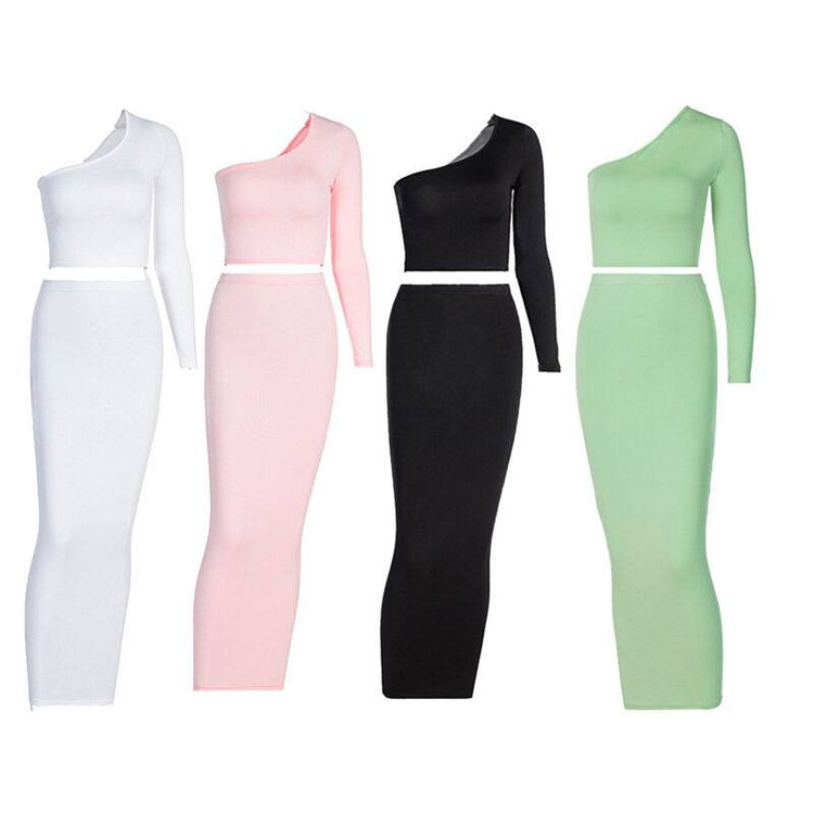 ست دوتکه زنانه با تاپ تک آستین و دامن بلند چهار رنگ
