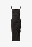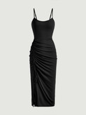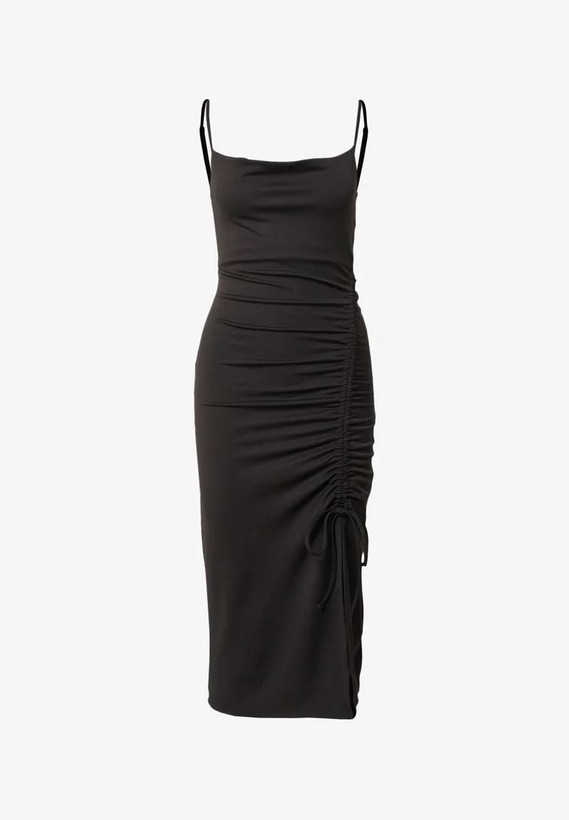 با این پیراهن جذب مشکی، زیبایی و ظرافت را همزمان تجربه کنید. طراحی مدرن با بندهای نازک وگت در قسمت پهلو، این لباس را به انتخابی خاص برای مهمانیها، تولدها و قرارهای شبانه تبدیل کرده است. جنس پارچه لطیف و کشی، فرم بدن را به زیبایی نمایش میدهد و با استایل جذاب و زنانهاش، نگاهها را به خود جذب میکند.