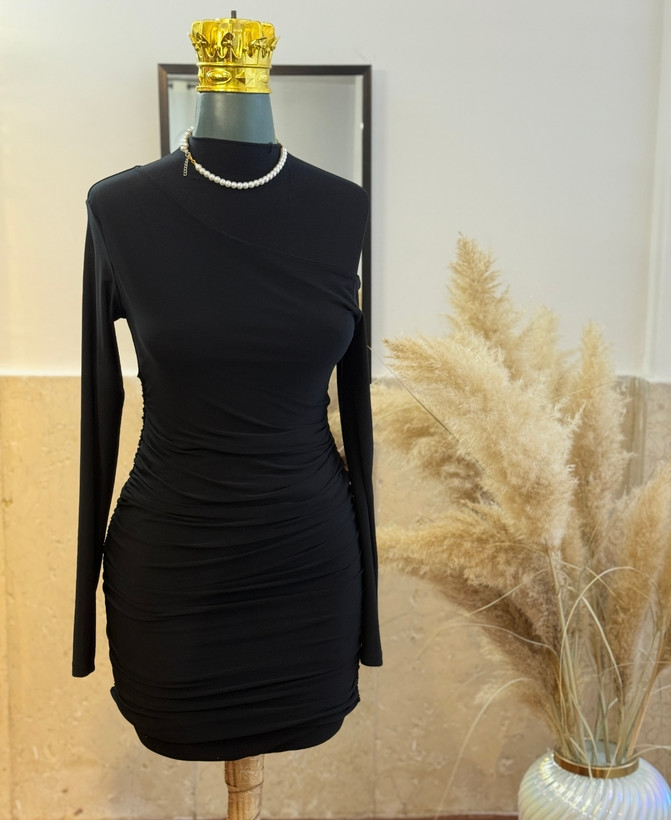 پارچهی کشی و باکیفیتش فرم بدن رو خوشفرم و کشیده نشون میده و چینهای ظریفش باعث میشه لباس کاملاً روی تن بخوابه