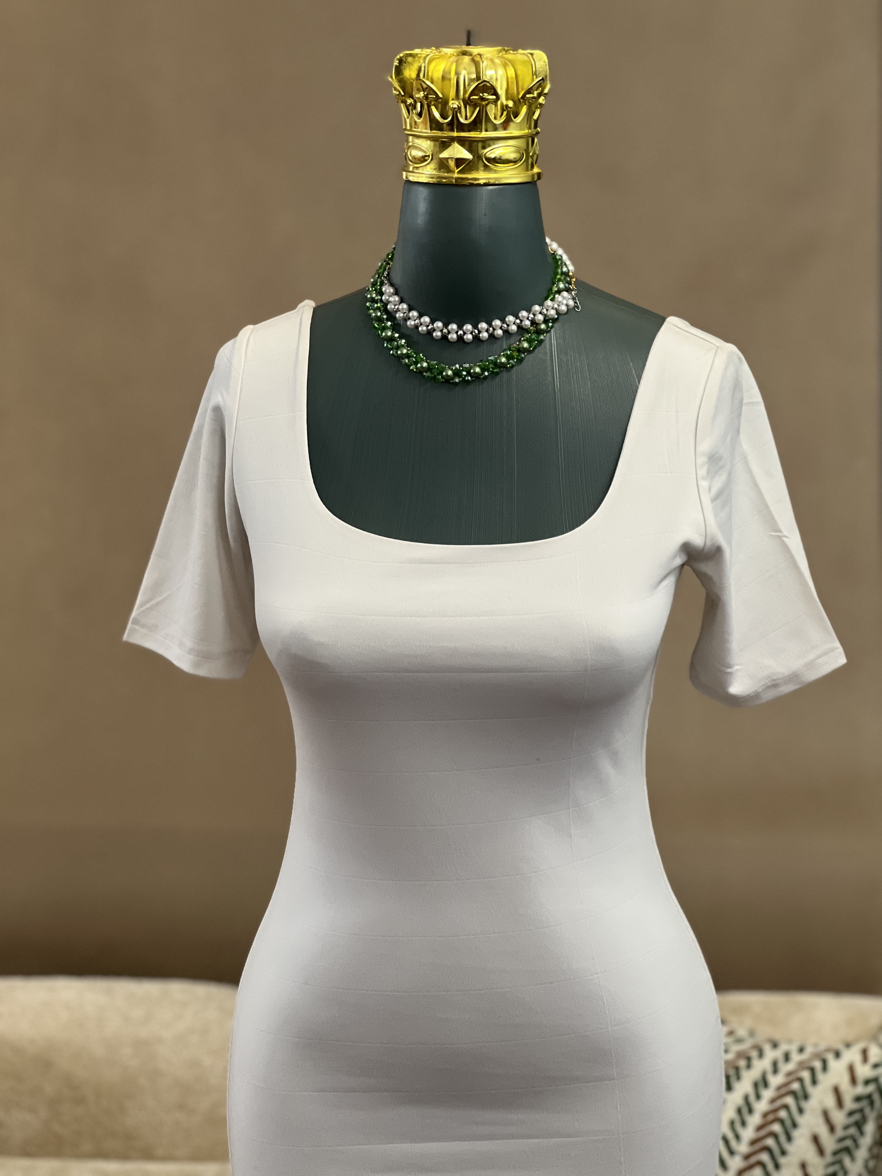 پیراهن یقه خشتی آستین کوتاه قد:۱۱۰ جنس فلامنت کشی دولایه دوخت سایز ۱ ،۲ موجوده به (۳۸ تا ۴۲) میخوره رنگ :سفید تنخور بینظیر ،سالها میتونید بپوشید مناسب خونه،باغ،دورهمی خانوادگی و..