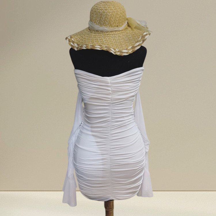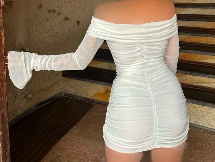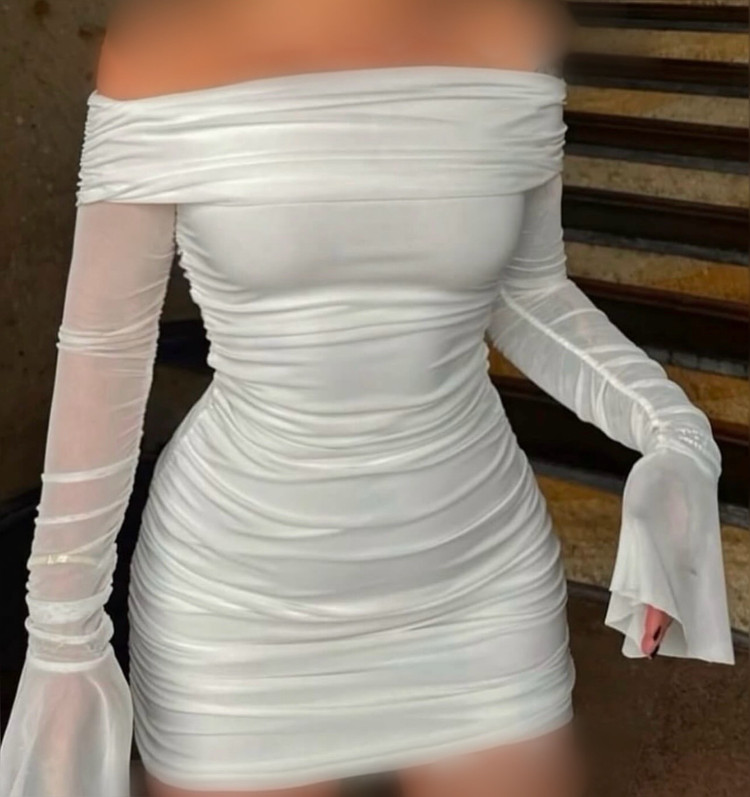 پیراهن آف شولدر تمام چین آستین دلبری حریر کش ترک
