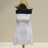 پیراهن آف شولدر تمام چین آستین دلبری حریر کش ترک