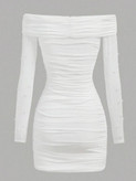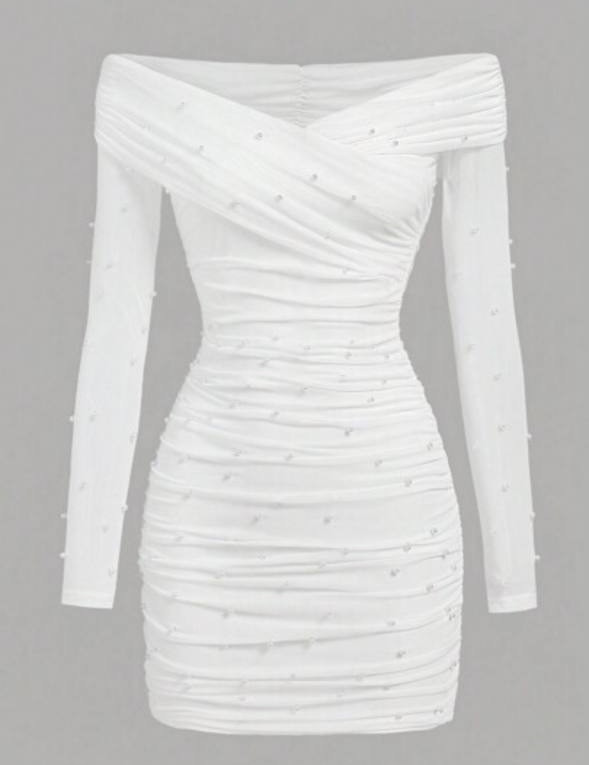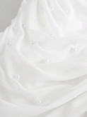 پیراهن چپ و راستی حریر کش مرواریدی رنگ سفیدش عالی برای مجالس رسمی تولد، تالار، دیسکو آستر کشی شده قد ۷۰ با چین از روی سینه
